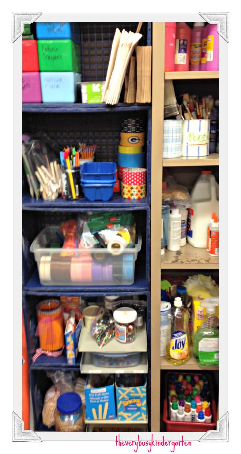 This is the area where I store all my art supplies. This is not the stuff that the kids can access. This is the stuff where I gather things for class projects.